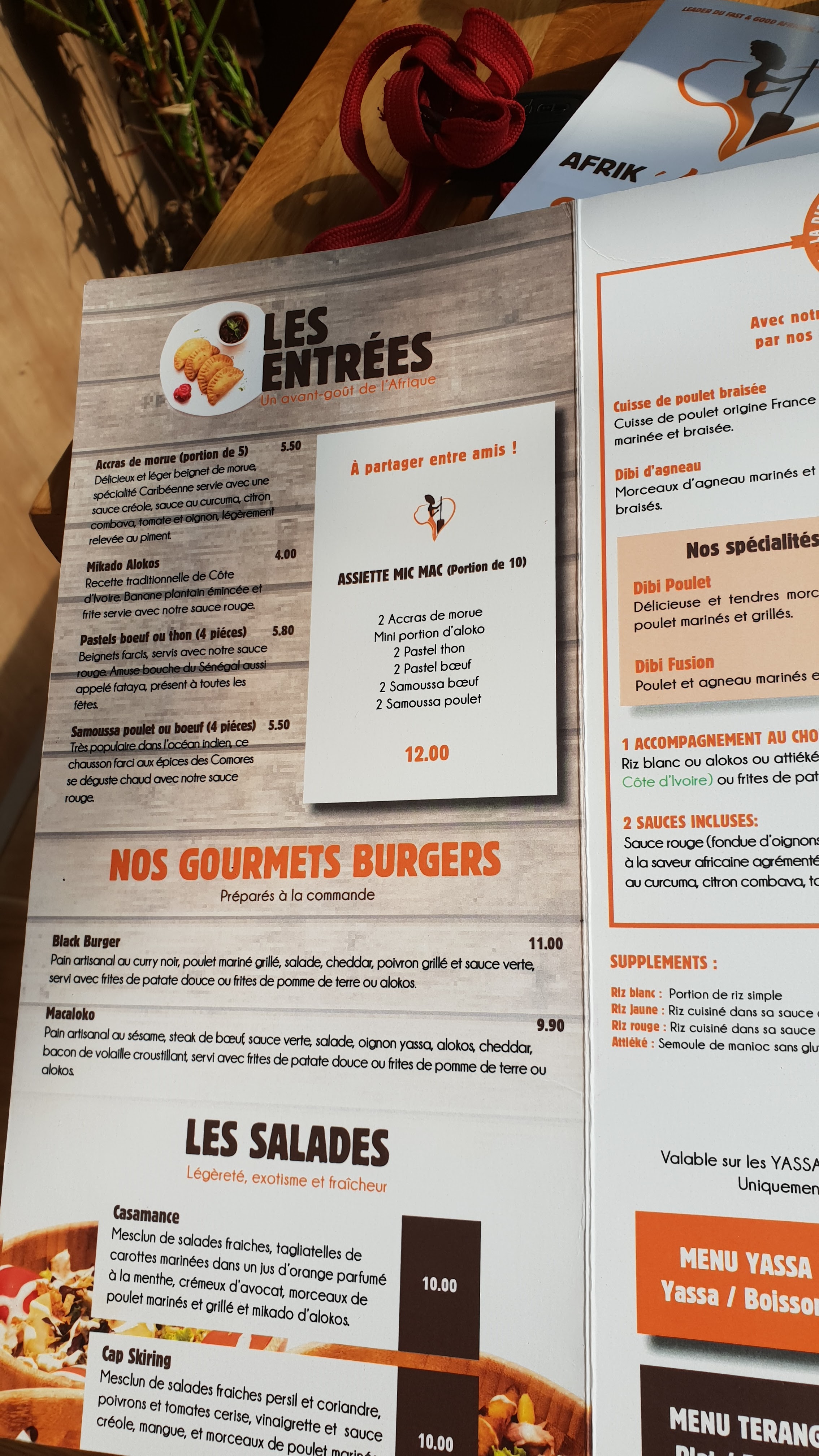 "Poulet Yassa et poulet braisé/alloco très bons. En ce qui concerne le service, mauvaise organisation: forte affluence le midi et seulement une seule personne en salle qui installe, prend les commandes, va chercher les plats, débarrasse. Ce qui fait que l'attente est très longue. Il n'y a pas non plus de chauffage, pénible en hiver car on ne peut pas retirer son manteau. Rapport qualité-prix correct !"
