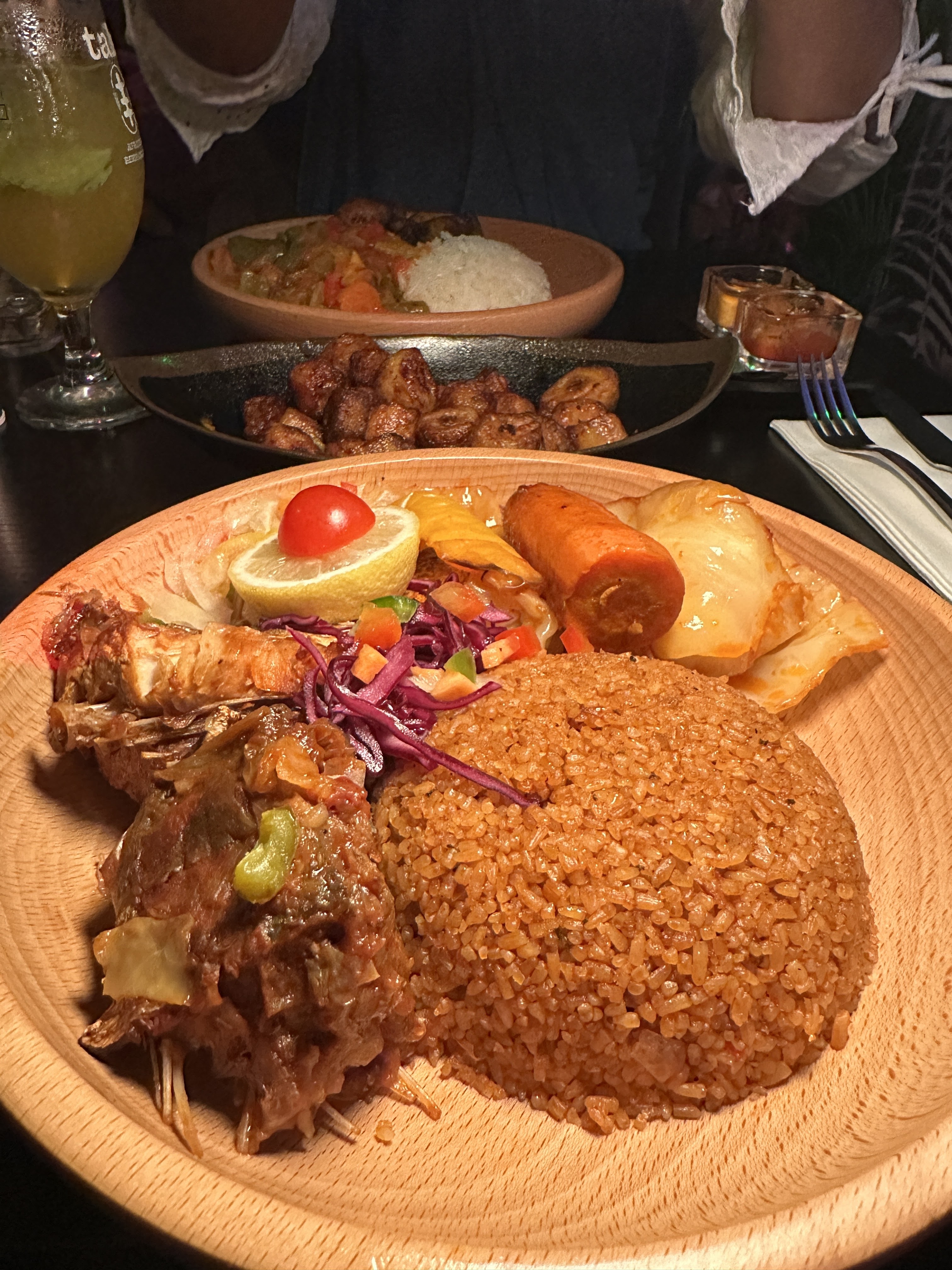 Posté le 08/02/2022 à 08:12"Très bonne adresse ! Une décoration aux inspirations africaines qui propose de délicieuses spécialités du continent, principalement l’Afrique de l’Ouest et Centrale. Les plats sont vraiment copieux et savoureux en particulier les plats à base d’agneau ou de bœuf avec une cuisson parfaite qui les rend tendres à souhait. Le service peut être un peu long mais l’ambiance musicale et la cuisine valent le coup. Nous avons commandé : - Un assortiment à partager de pastels bœuf, accras et bananes plantains - Ndolé boeuf/crevettes accompagné de chikwangue (manioc) - Dibi d’agneau - Thieboudienne au poisson et légumes - Poulet DG - Poulet braisé avec frites de patates douces - Mafé Amateur de voyages culinaires, n’hésitez pas ! instagram @cheyelicious"