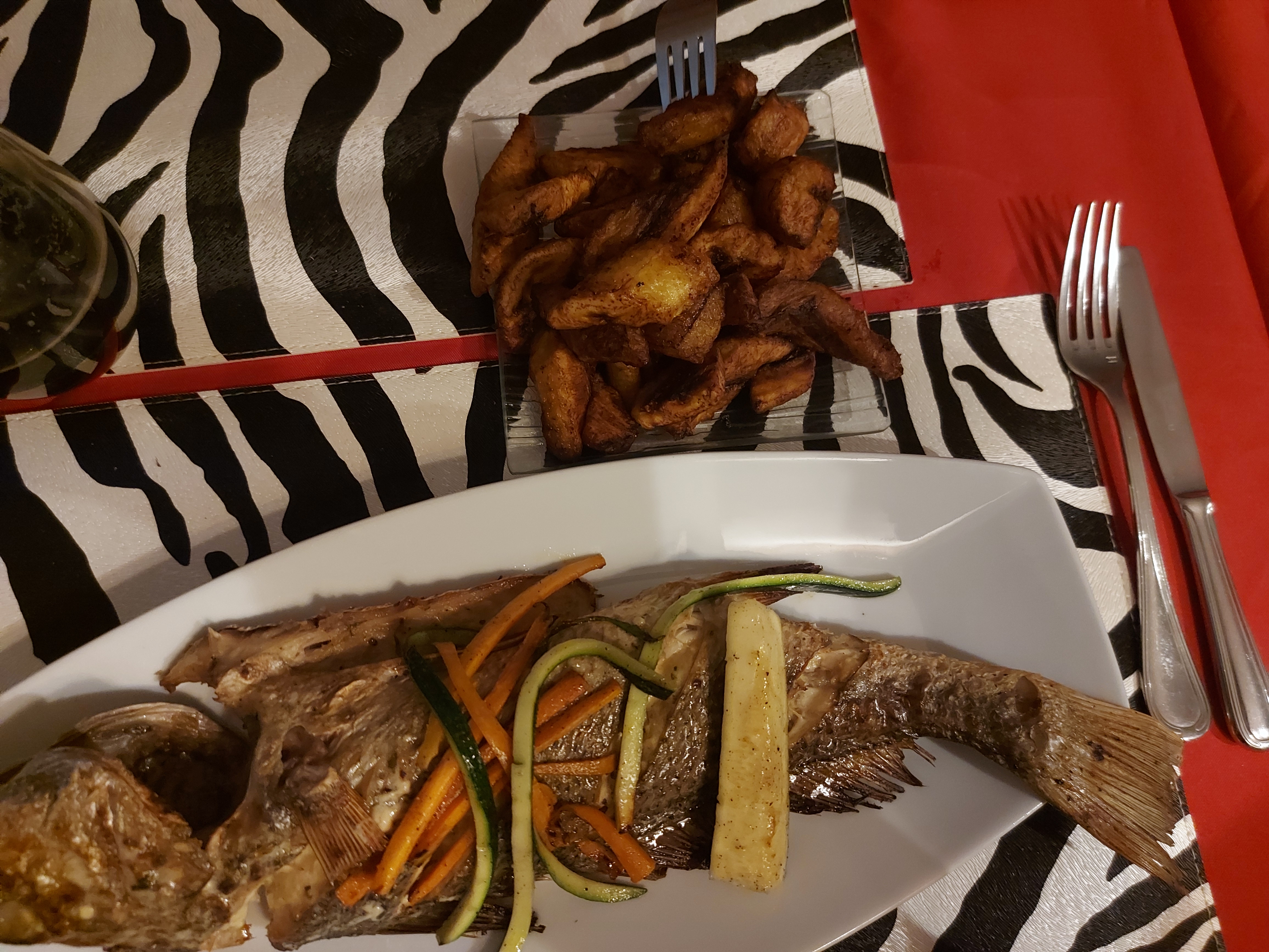 Posté le 26/11/2021 à 10:31"Dîner très plaisant: carte simple mais alléchante, avec des prix très corrects pour la qualité des produits servis et la quantité servie ! Le poisson braisé était délicieux et goûteux, ainsi que le Ndole. La terrasse est sympa également, avec un douce ambiance musicale."